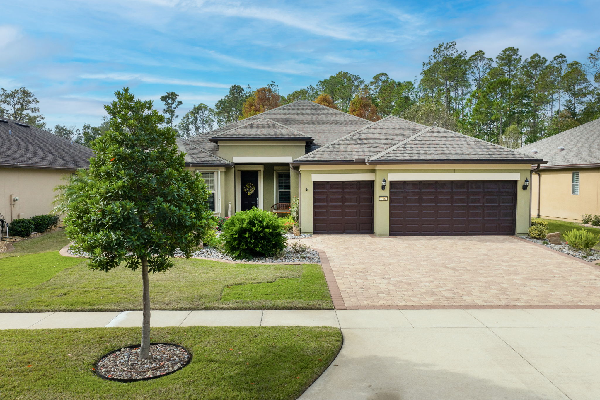 Impeccably maintained by the original owner. Estate size Dunwoody Trail floor plan features 2,490 sq ft located in Del Webb Ponte Vedra 55+ community. This home sits on a quiet 70' pond-to-preserve homesite. Enjoy 3 bedrooms, 3 full baths, & a flex/library with built-ins. No carpet—engineered hardwood throughout living areas & bedrooms, plus diagonal-laid tile in kitchen & baths. The spacious kitchen offers wood cabinets with pull-out drawers, large island & pantry, & ample recessed lighting. Dining area captures beautiful natural light & peaceful water views. Crown molding throughout, newer A/C & water heater, plus hurricane shutters for all windows. The 4' extended garage includes epoxy floor, screened pull-down doors, & golf cart space, plus plenty of room for storage. Large laundry room with sink. All appliances, ceiling fans, & water softener convey. Don't miss your chance—come see how this home perfectly blends style, space, & comfort.